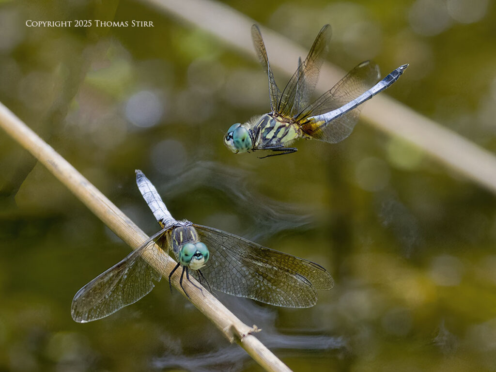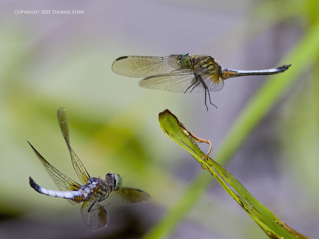 I had a couple of occasions where I was able to capture some territorial challenges between two dragonflies.