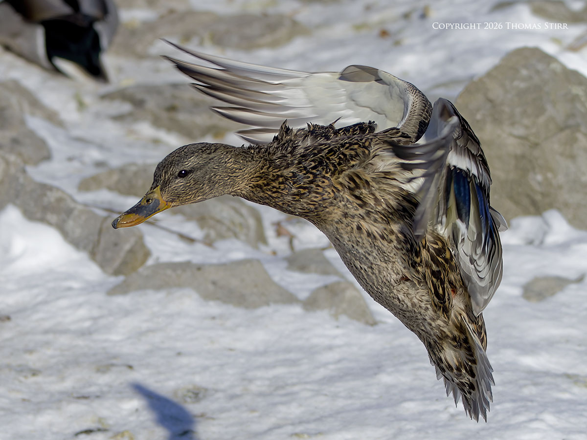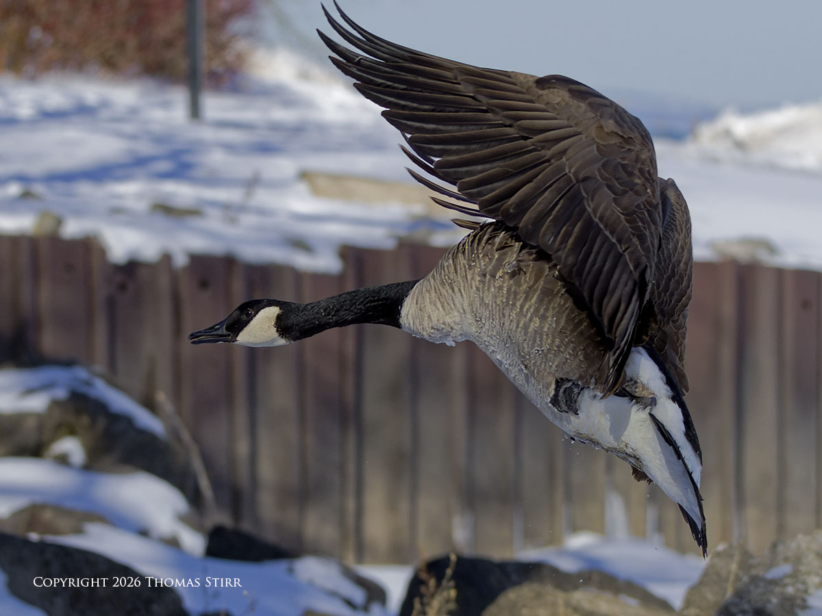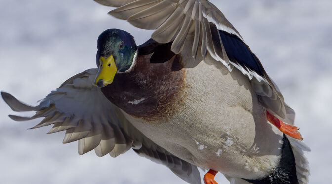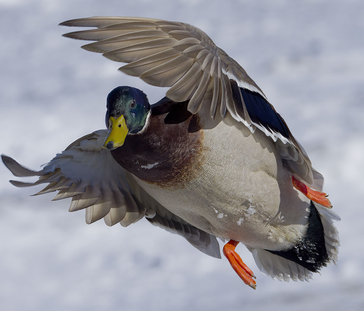 On Sunday this past weekend I had the chance for a February practice session, photographing birds-in-flight at a local frozen-over harbour. Most of the birds were ducks and geese, along with a few gulls.