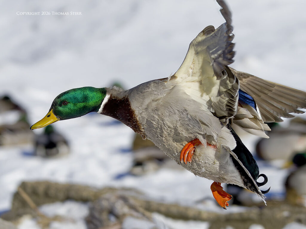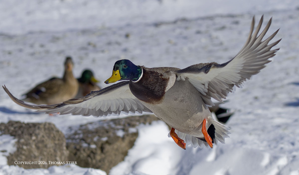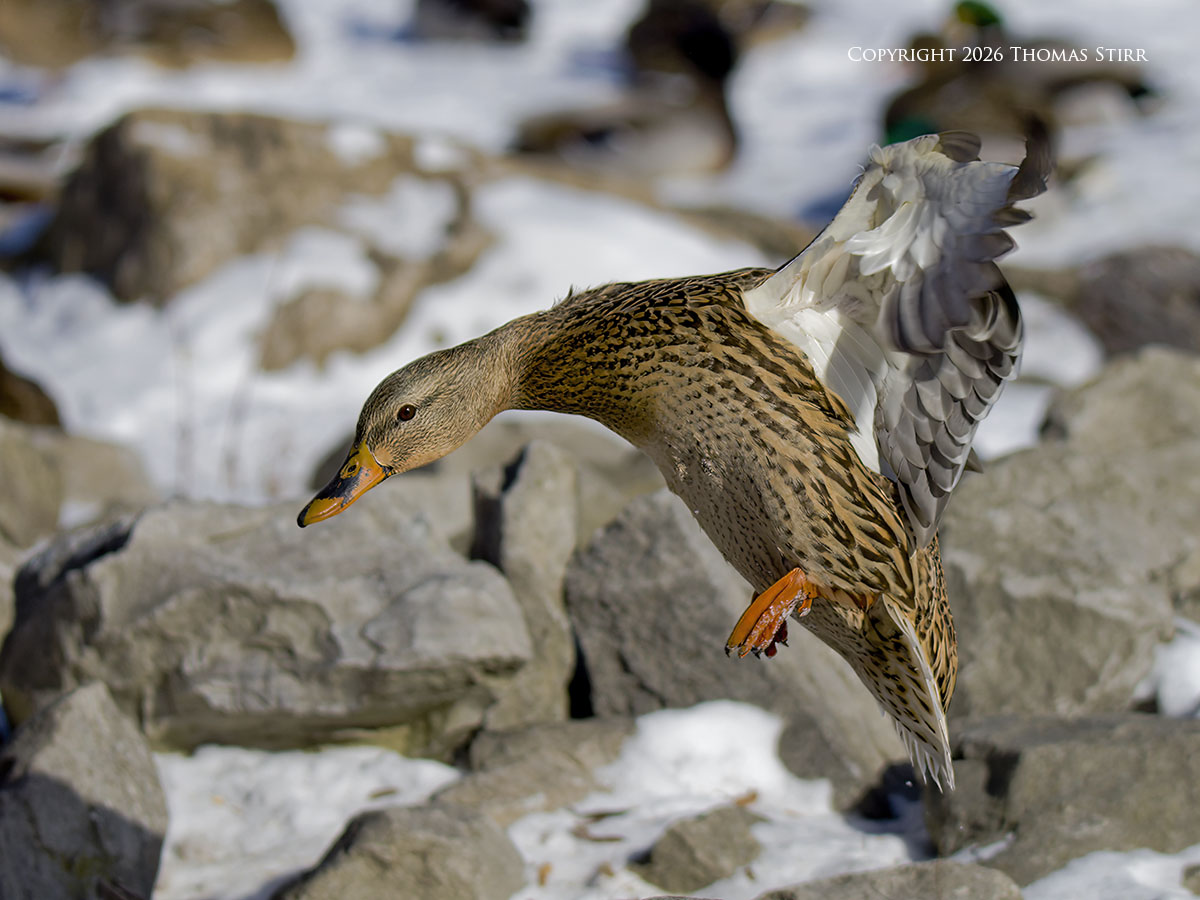 On Sunday this past weekend I had the chance for a February practice session, photographing birds-in-flight at a local frozen-over harbour. Most of the birds were ducks and geese, along with a few gulls.