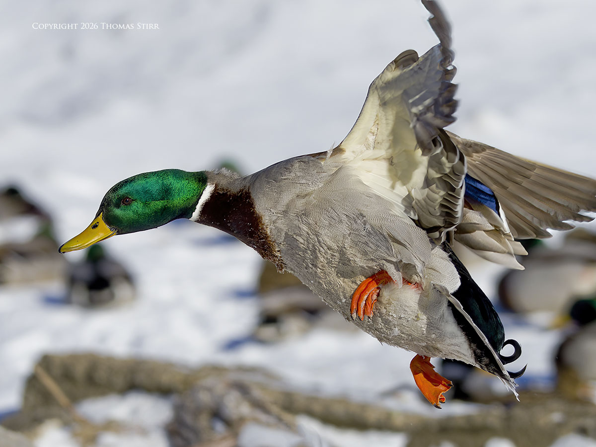 On Sunday I estimated that there were about 700-800 birds on the ice, all packed into a reasonably small area. This meant that there were a good number of birds taking flight, or coming in to land, on a regular basis.
