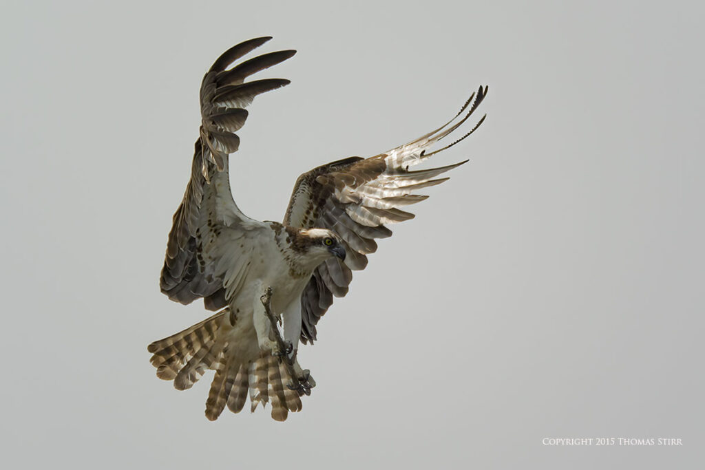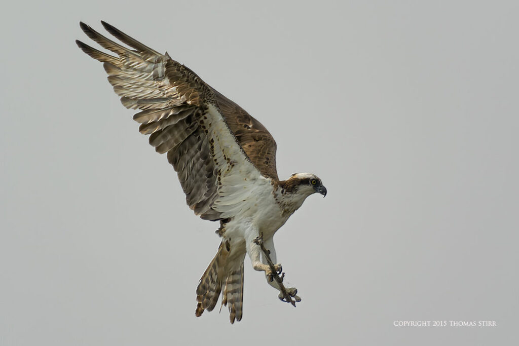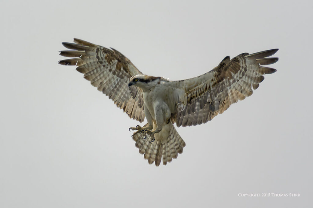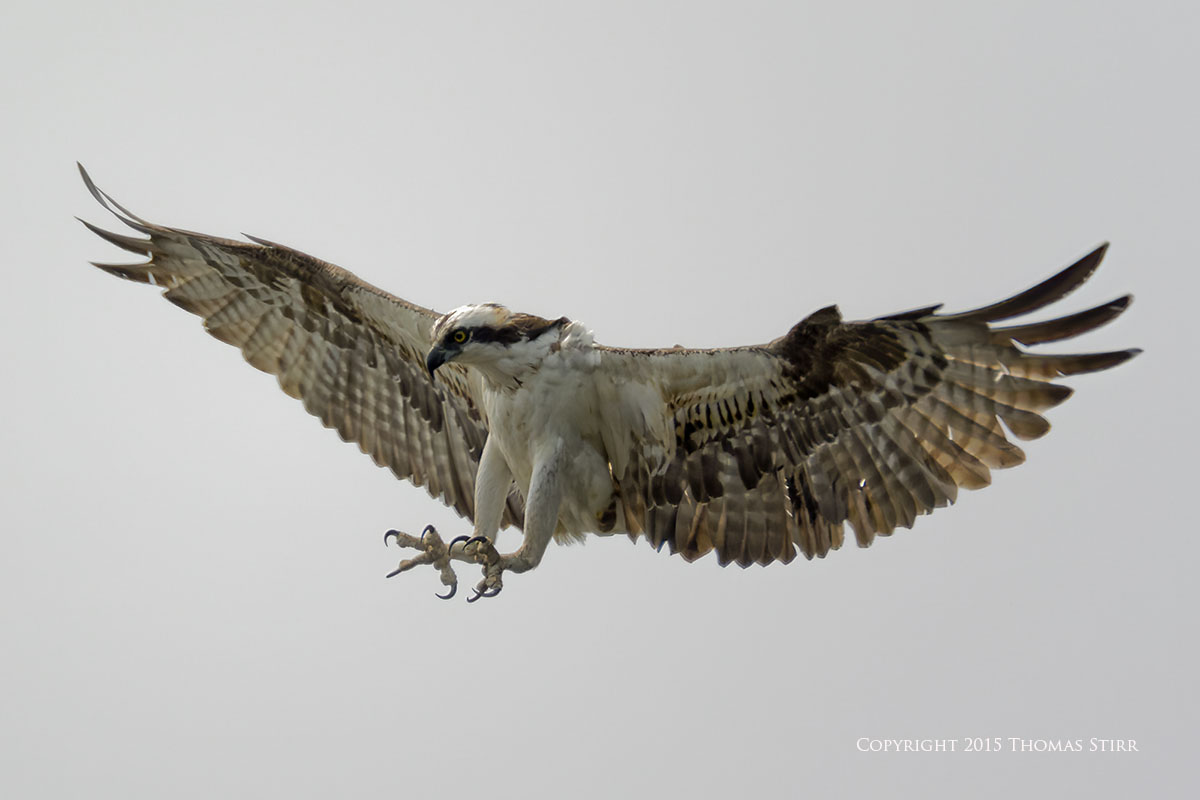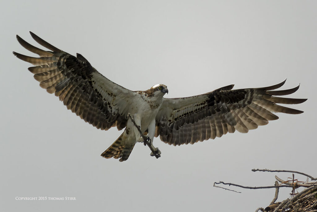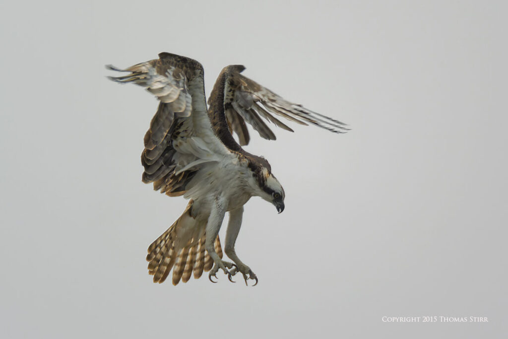 There was a photographer/bird watching blind at the facility, as well as a nesting platform that the ospreys used in the spring. All of the osprey in-flight images were captured as ospreys flew towards the nesting platform. As you can tell from the images, it was a dull, overcast day.