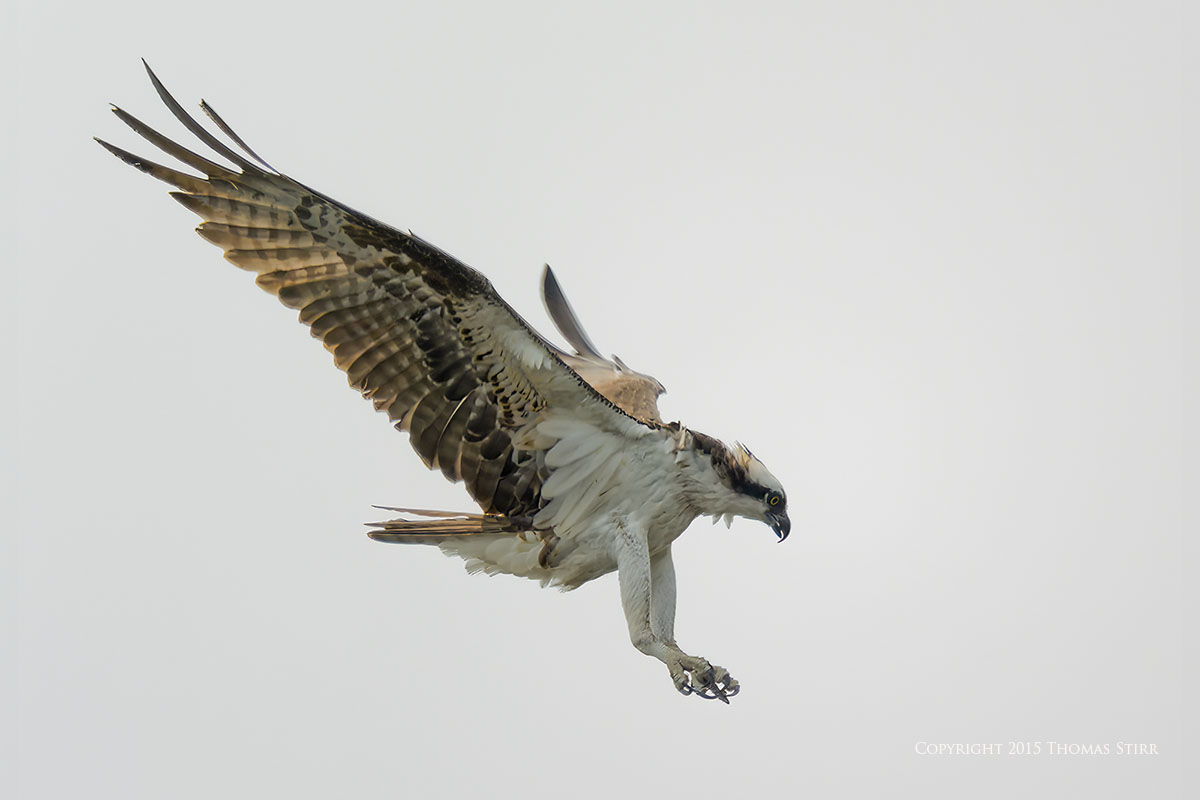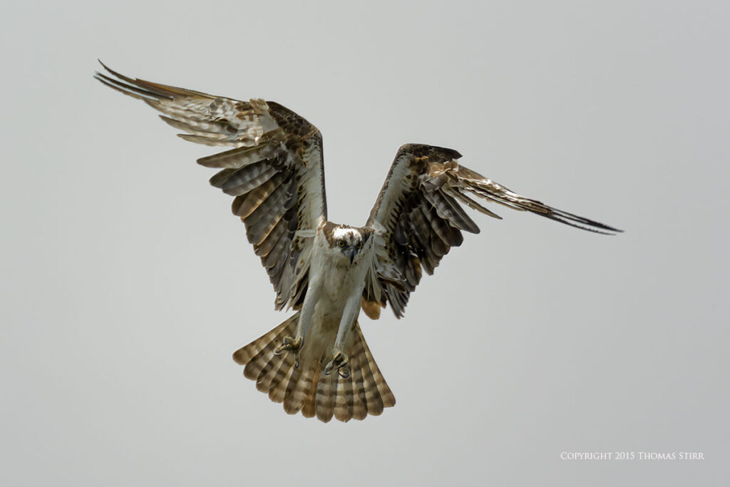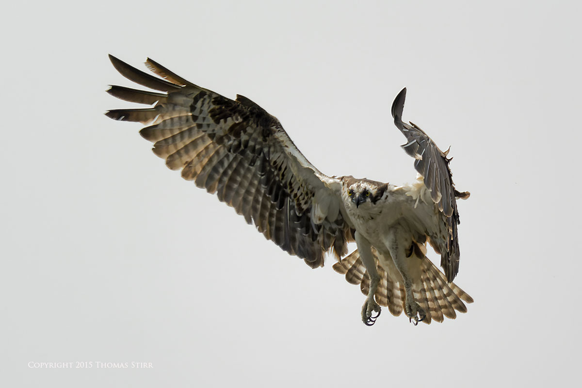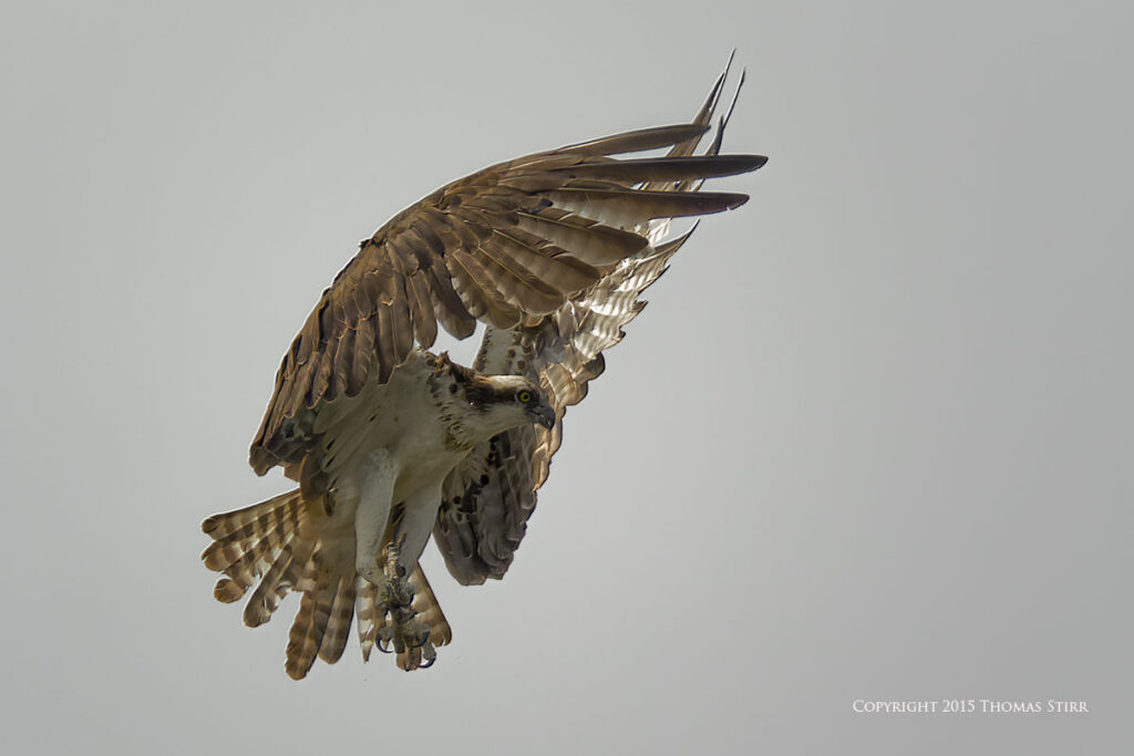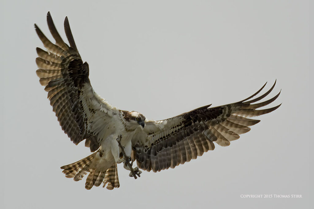 There was a photographer/bird watching blind at the facility, as well as a nesting platform that the ospreys used in the spring. All of the osprey in-flight images were captured as ospreys flew towards the nesting platform. As you can tell from the images, it was a dull, overcast day.