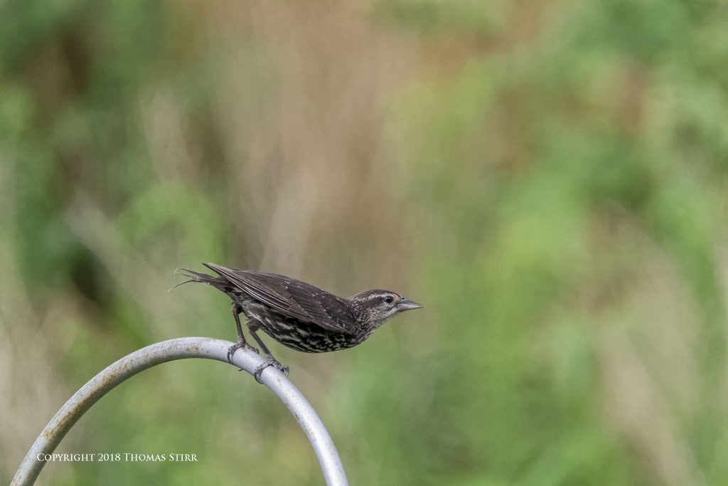 This is a Red-winged Blackbird. The heavy streaking on females and immature birds often leads to confusion with sparrows so it is always of value to look at the beak – blackbirds have much sharper bills than sparrows.