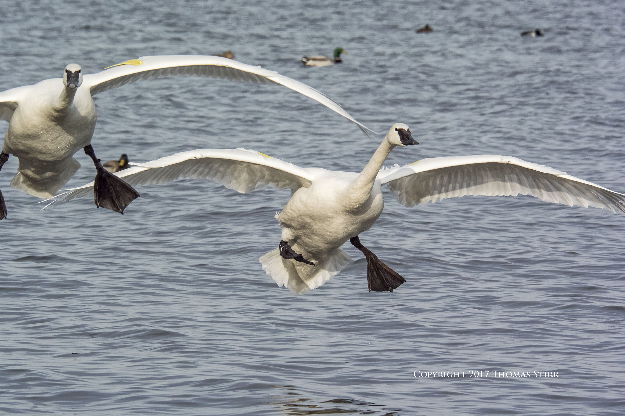 The wing from the swan on the left hand side of the photograph is creating an optical illusion of a ‘mega wing’.